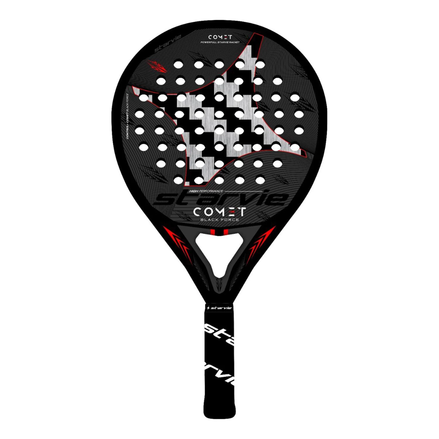 The new Comes is perfect for intermediate level players who seek good ball output. Due to its round shape and medium balance, toghether with the carbon 24K fiber in its surface and a rubber Soft V28, the racket acquires a big sweet spot and a good ball output.
